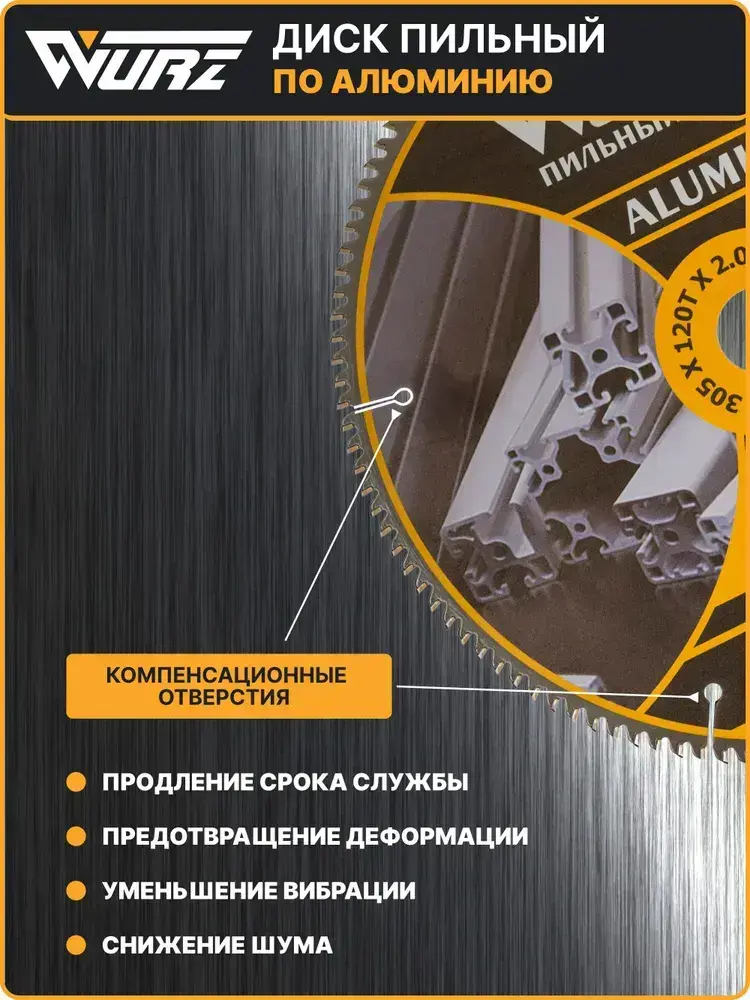 Диск пильный по алюминию 255х100Тх1.8/2.6х30мм WURZ WA255100