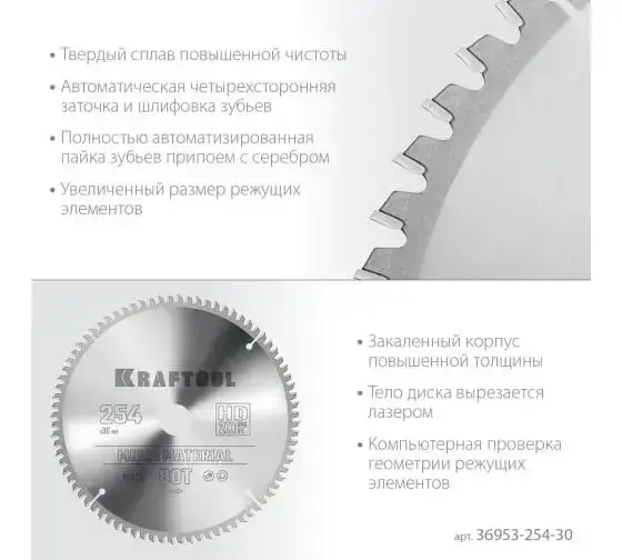 Диск пильный по алюминию Multi material 254x30 мм, 80Т KRAFTOOL