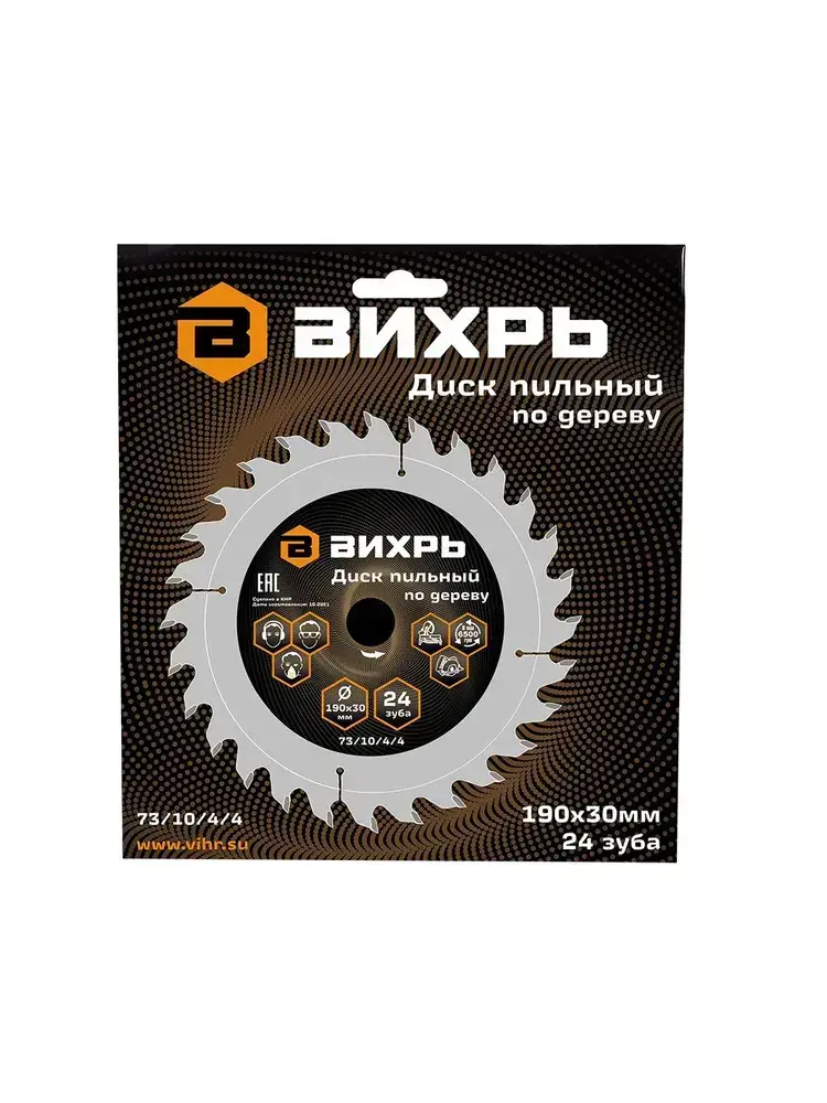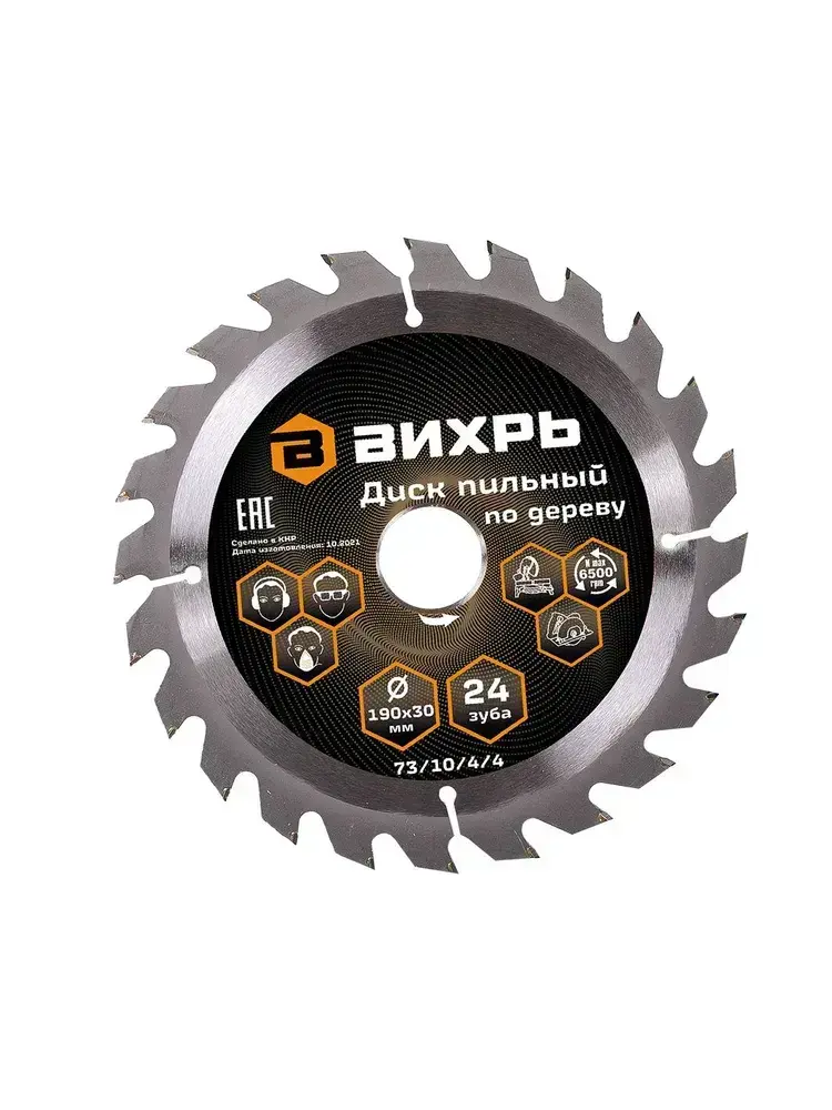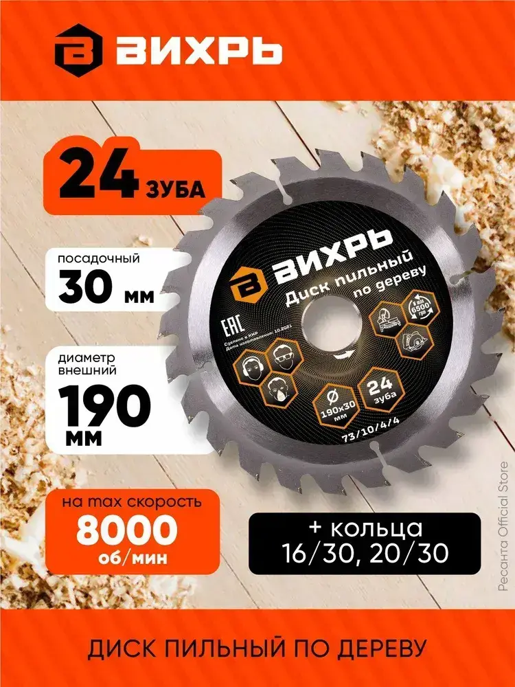 Диск пильный по дереву 190х30 мм - 24 зуба+кольца 16/30, 20/30 Вихрь; для циркулярки, для дисковой пилы