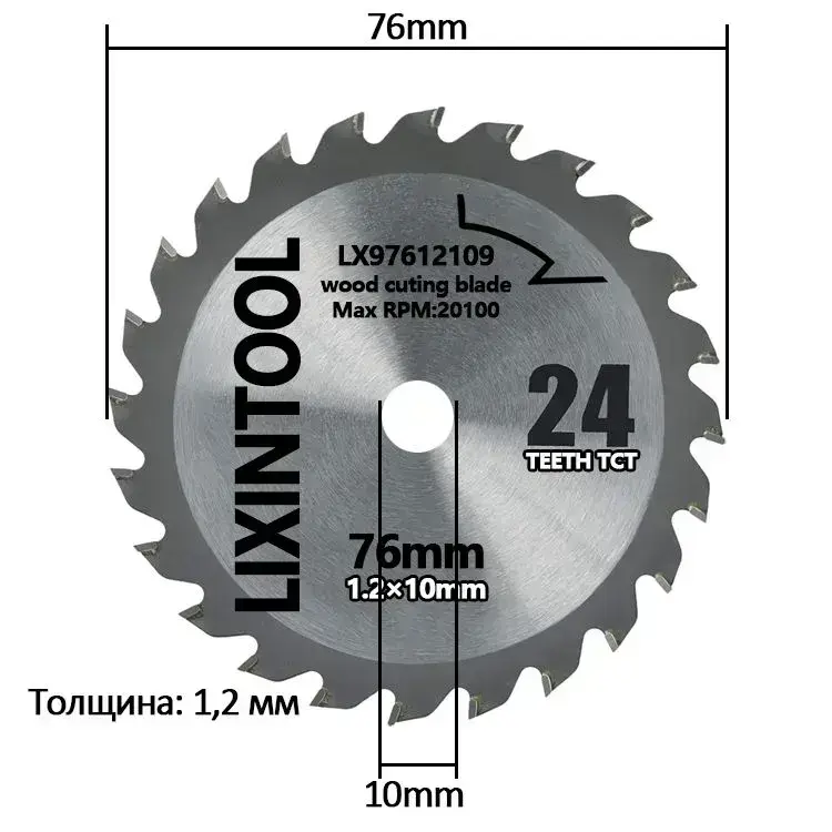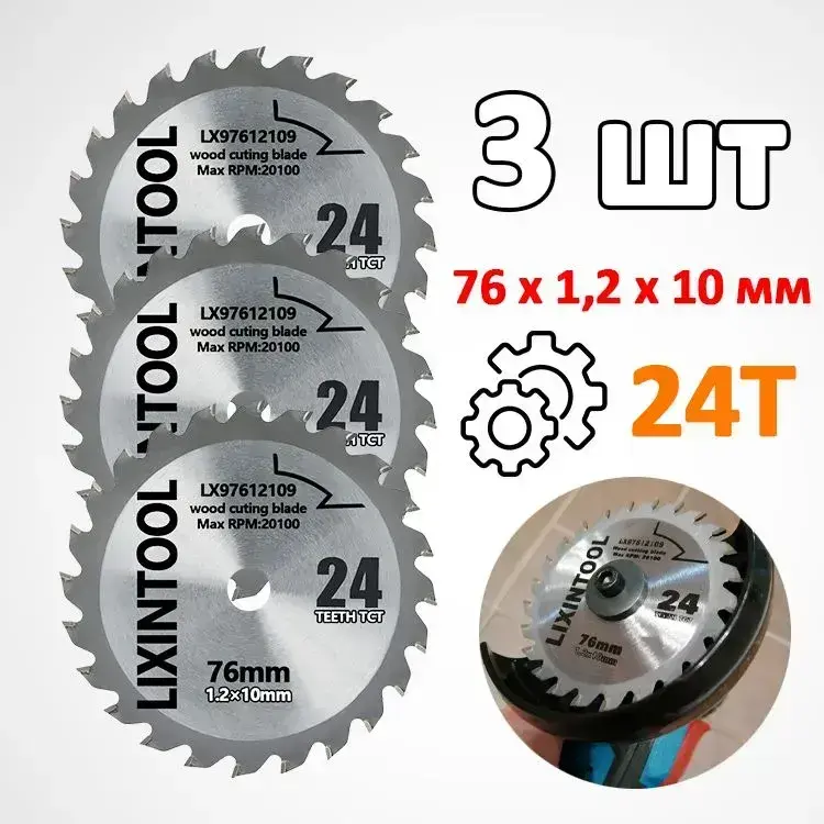 Диск пильный по дереву для УШМ LIXINTOOL, 76х1.2х10мм, для мини болгарки аккумуляторной, расходный инструмент, круг отрезной