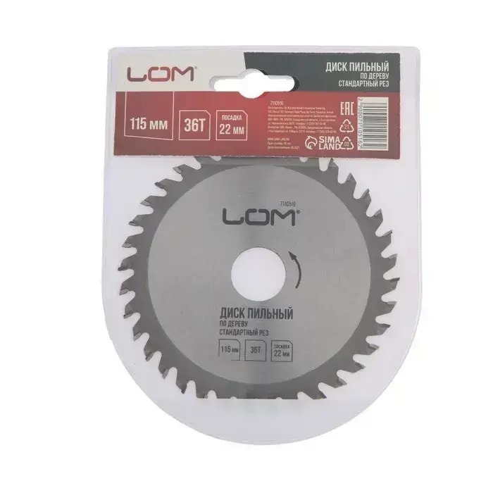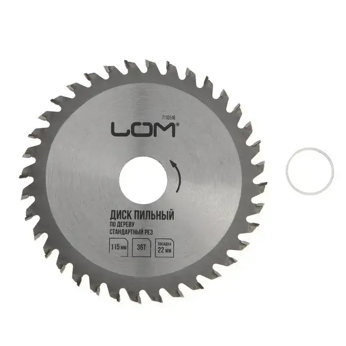Диск пильный по дереву ЛОМ, стандартный рез, 115 х 22 мм, 36 зубьев