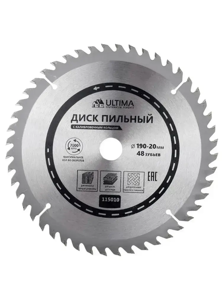 Диск пильный по дереву Ultima, 190 х 20 мм, 48 зубьев