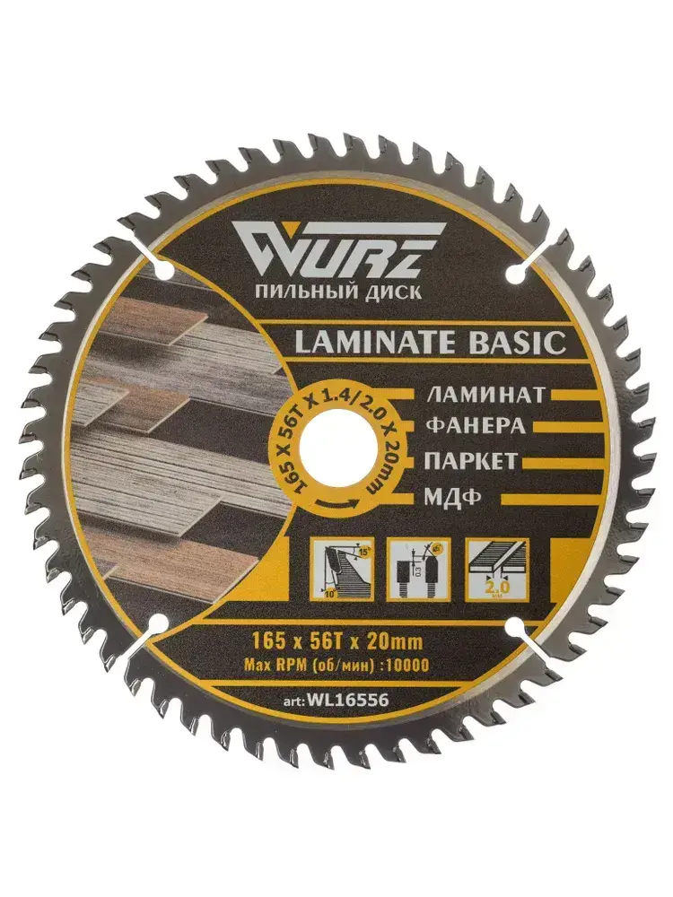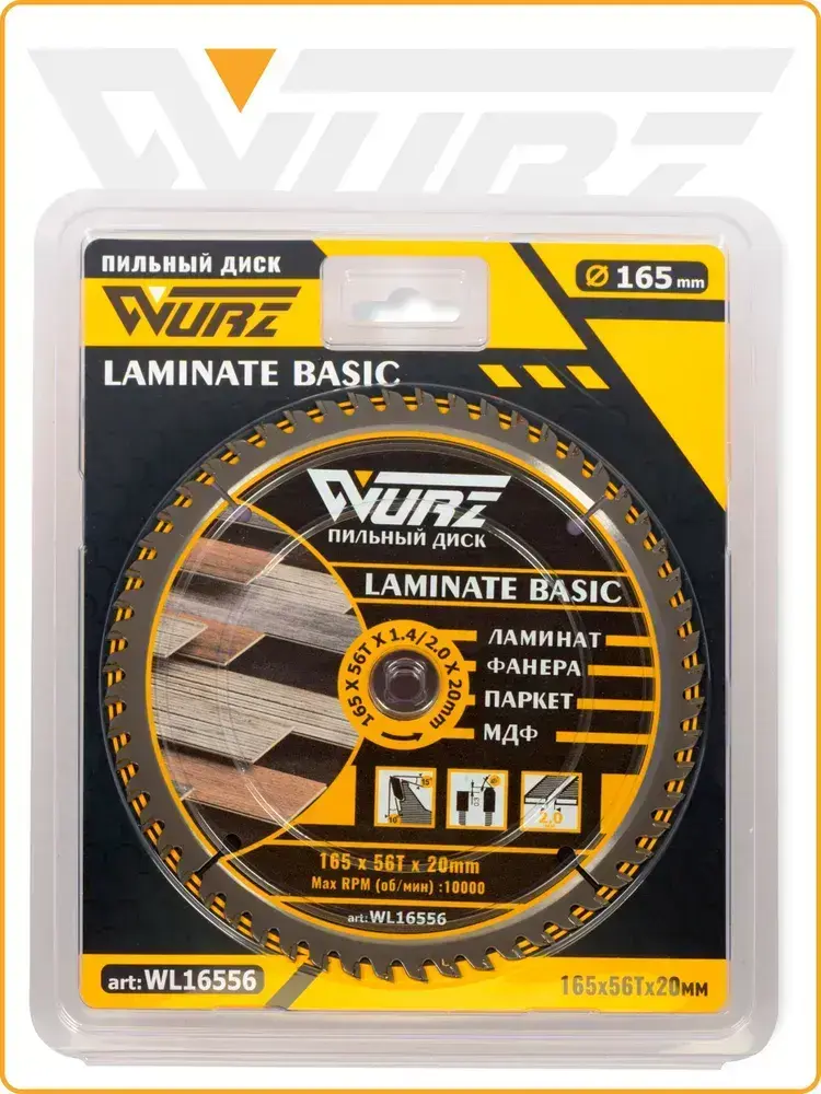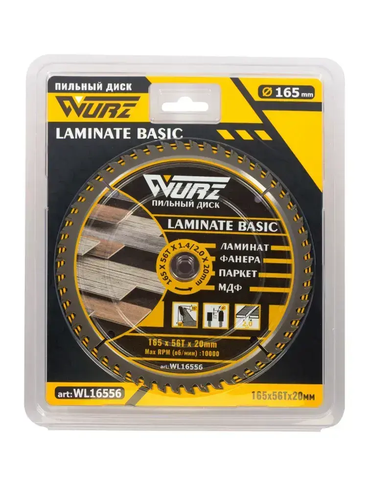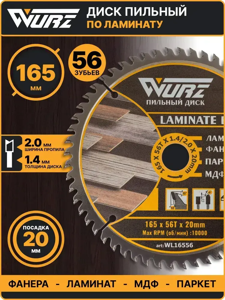 Диск пильный по ламинату 165х56Тх1.4/2.0х20мм WURZ WL16556