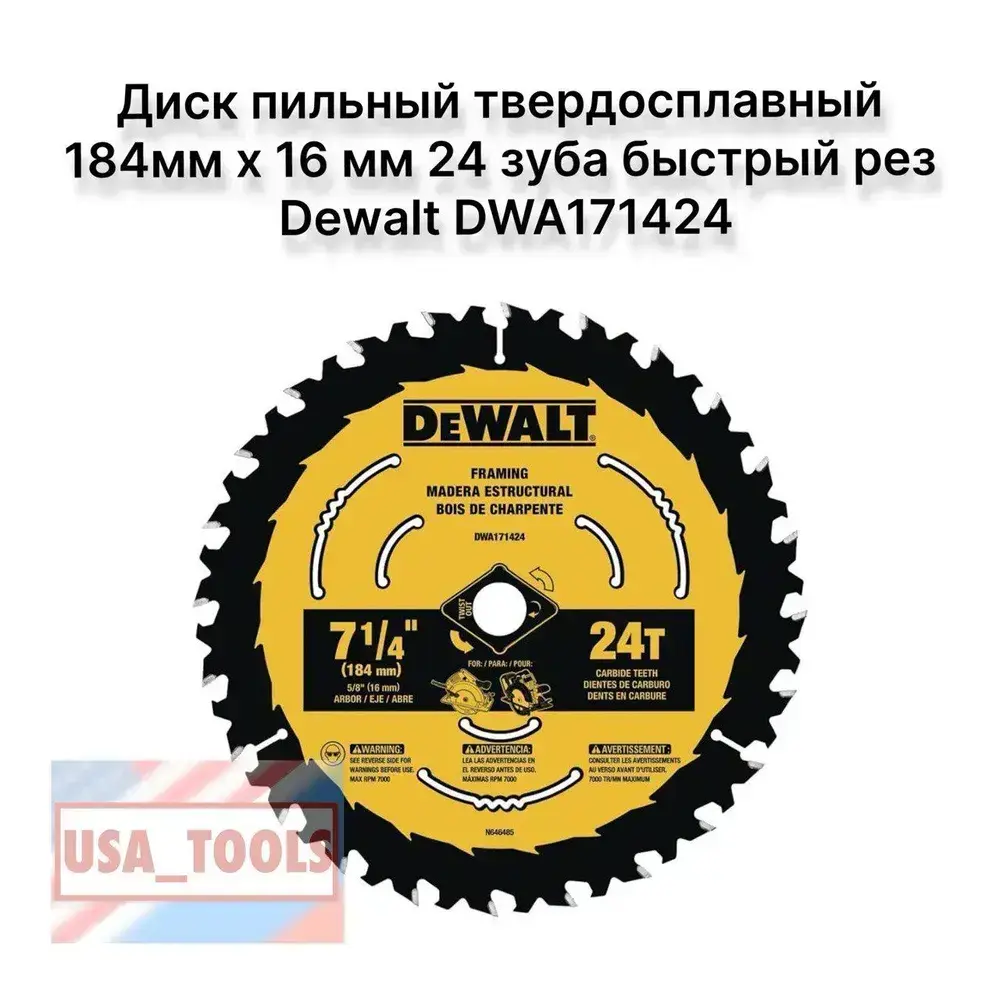 Диск пильный твердосплавный 184мм х 16 мм 24 зуба быстрый рез Dewalt DWA171424 БЕЗ БЛИСТЕРА