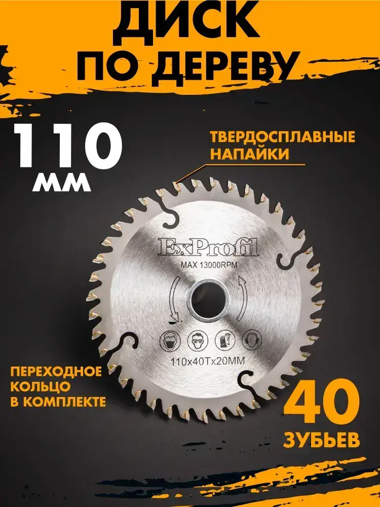 Диск по дереву на циркулярку и болгарку 110 мм 40 зубьев