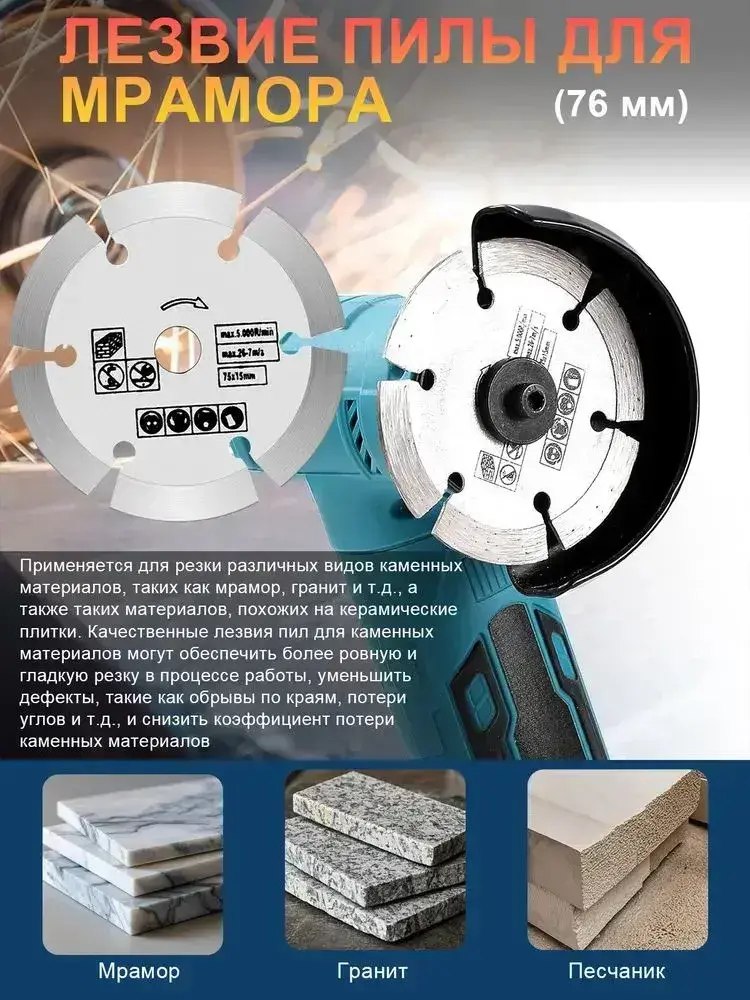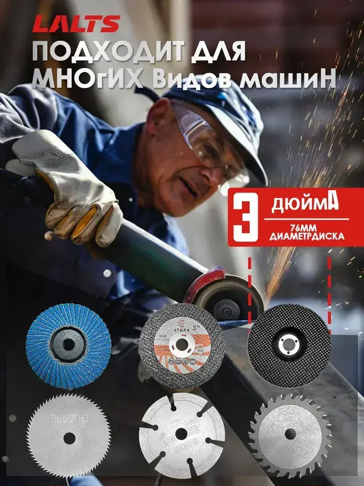 Диски для мини ушм 75x10mm/ набор 6 шт/Kруг шлифовальный, диск пильный по дереву, круг отрезной