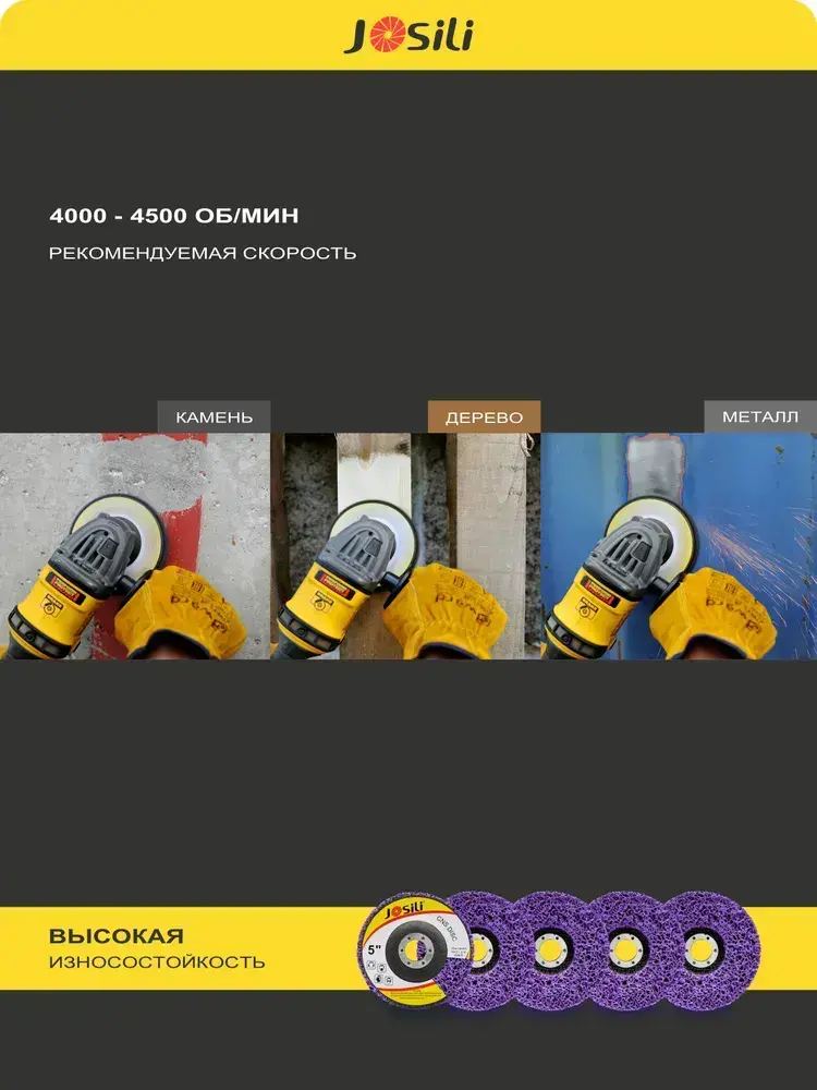 Диски коралловые шлифовальные Josili очень грубые 5 шт. 125мм, зачистные круги для УШМ/болгарки