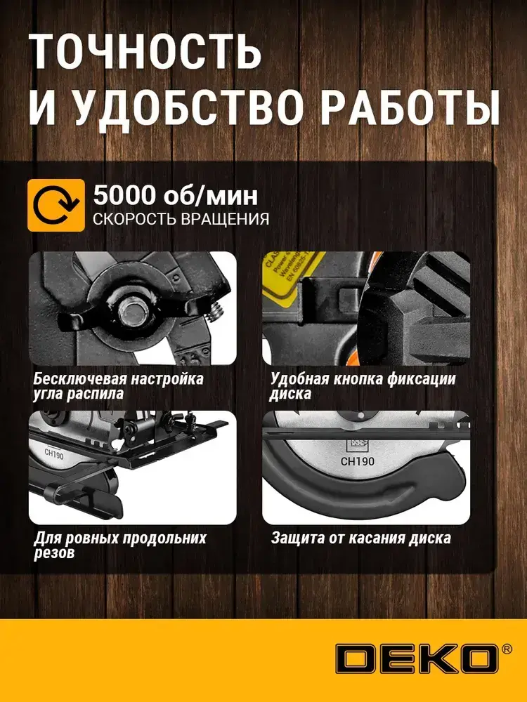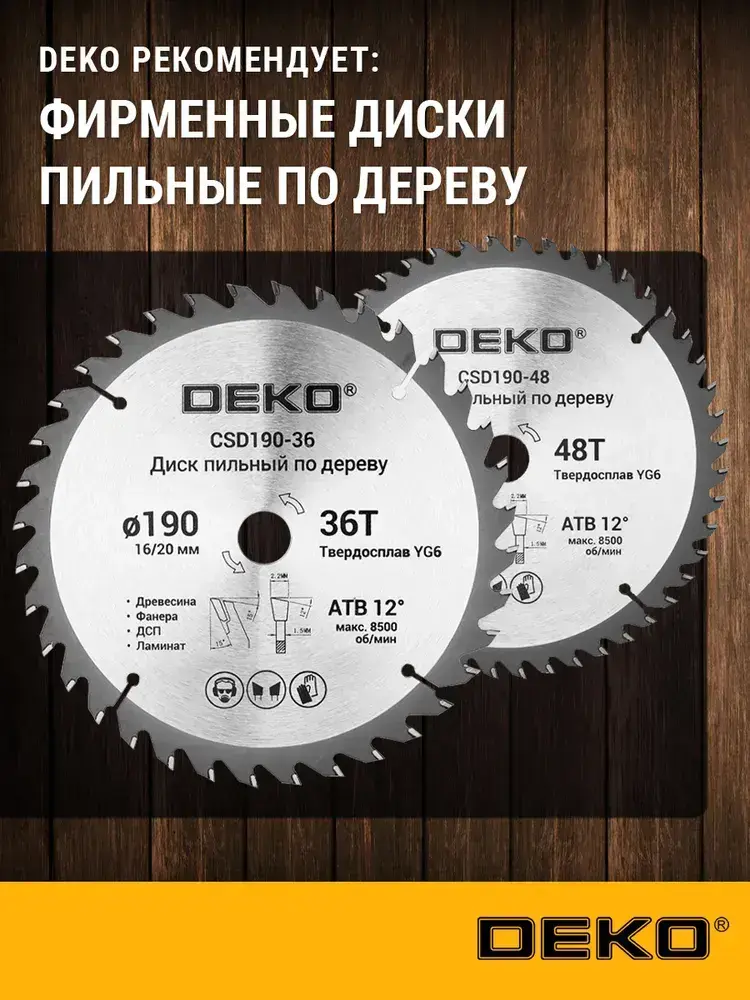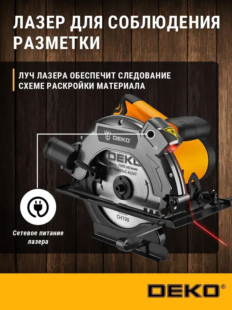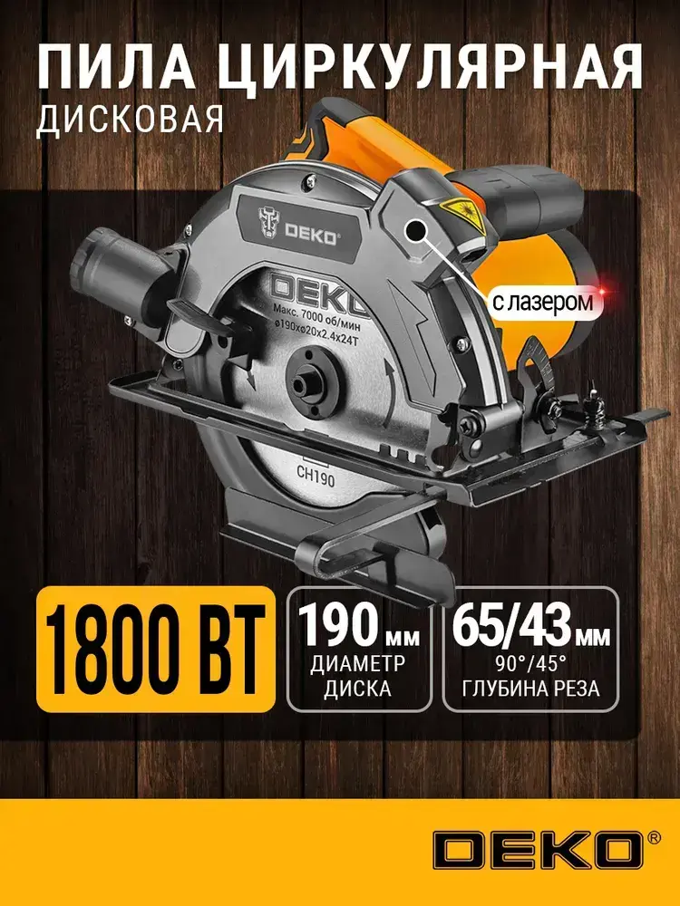 Дисковая (циркулярная) пила DEKO DKCS1800 Laser 1800Вт, 190мм диск, лазерный указатель