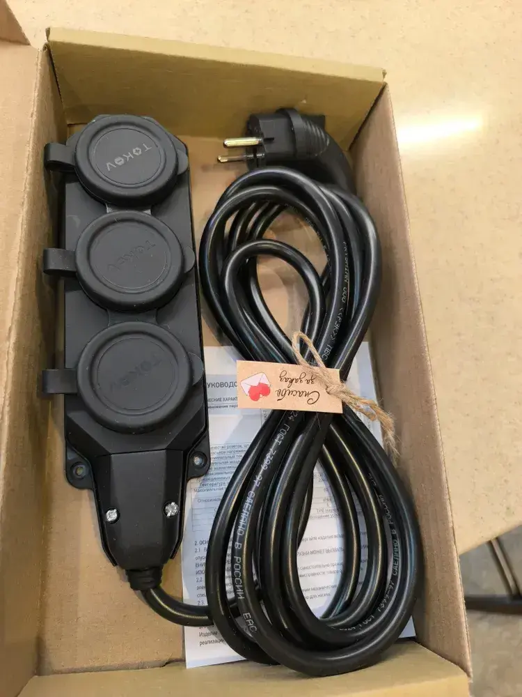 длинитель IP 44 влагозащищенный .с Угловой вилкой каучук 3 розетки 3 метра с заземлением 3на1,5 ПВС Гост