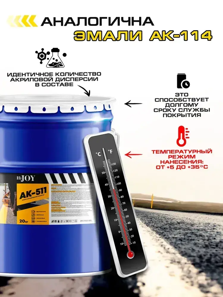 Дорожная краска АК-511 HiJOY , для ДОРОЖНОЙ разметки, краска для пола по бетону, износостойкая, быстросохнущая Белая, 7 кг