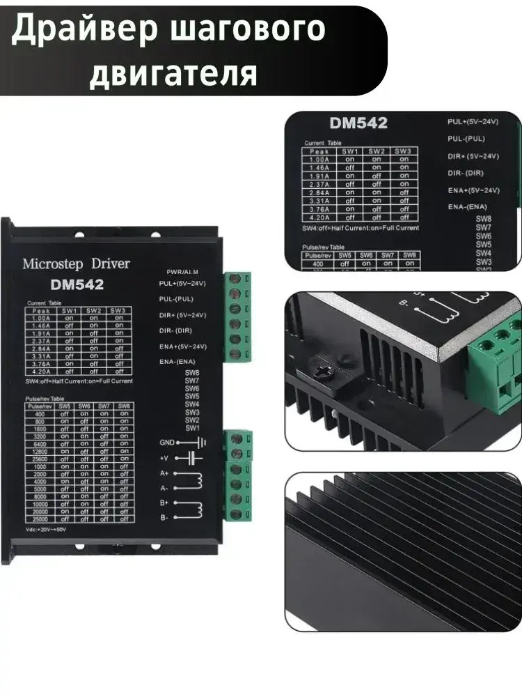 Драйвер шагового двигателя DM542, 20-50В, 4,2А / Микрошаговый привод для 42 57 шаговых двигателей Nema17 Nema23 напряжение питания