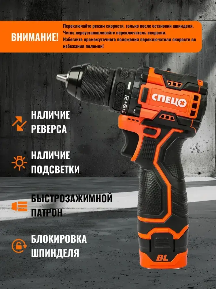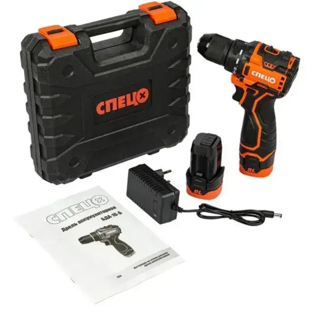 Дрель аккумуляторная СПЕЦ БДА-16-Б БЕСЩЕТОЧНАЯ (45Нм, 2АКБ х 2Ач, кейс)+ перчатки в ПОДАРОК