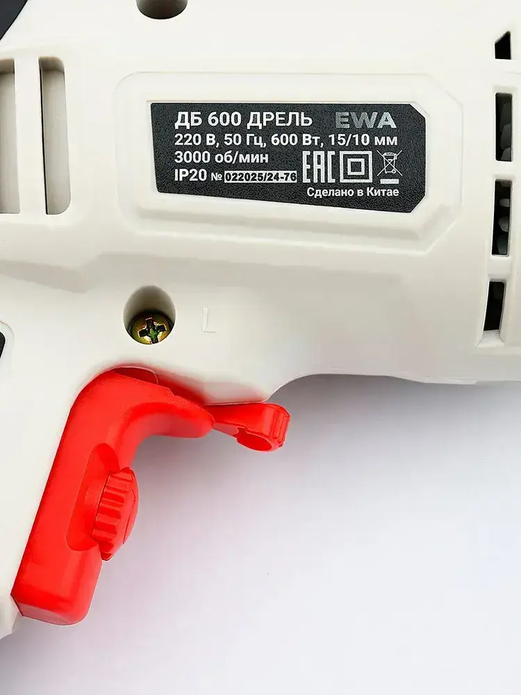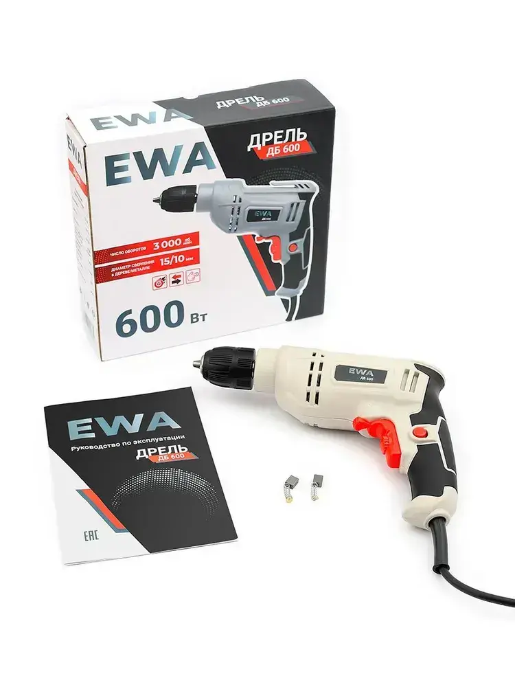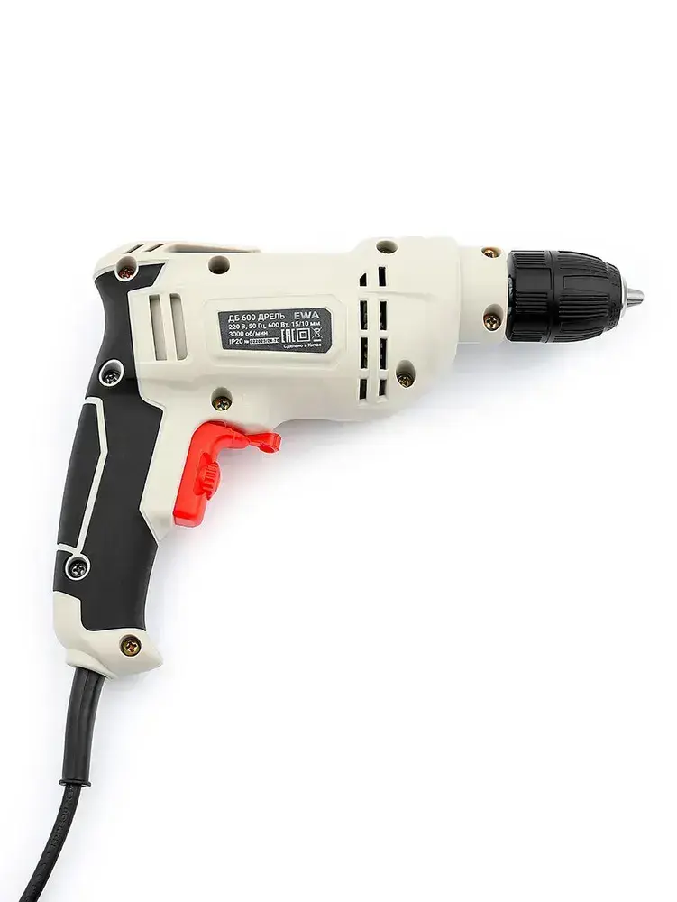 Дрель электрическая от сети, EWA, 600 Вт, регулировка оборотов 0-3000 об/мин, патрон до 10 мм