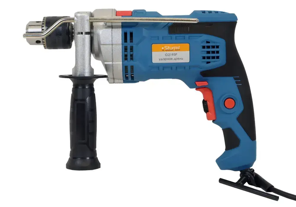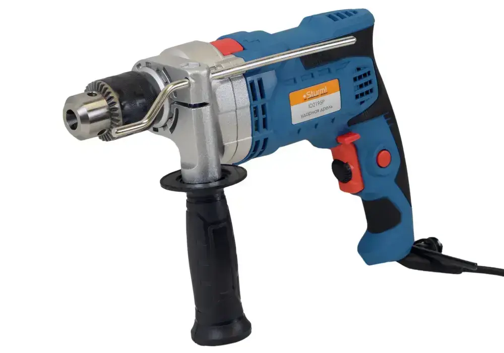 Дрель электрическая ударная мощность 1000Вт, обороты 2800об/мин, частота ударов 47600уд/мин, патрон 13мм, кабель 4м, металлический редуктор