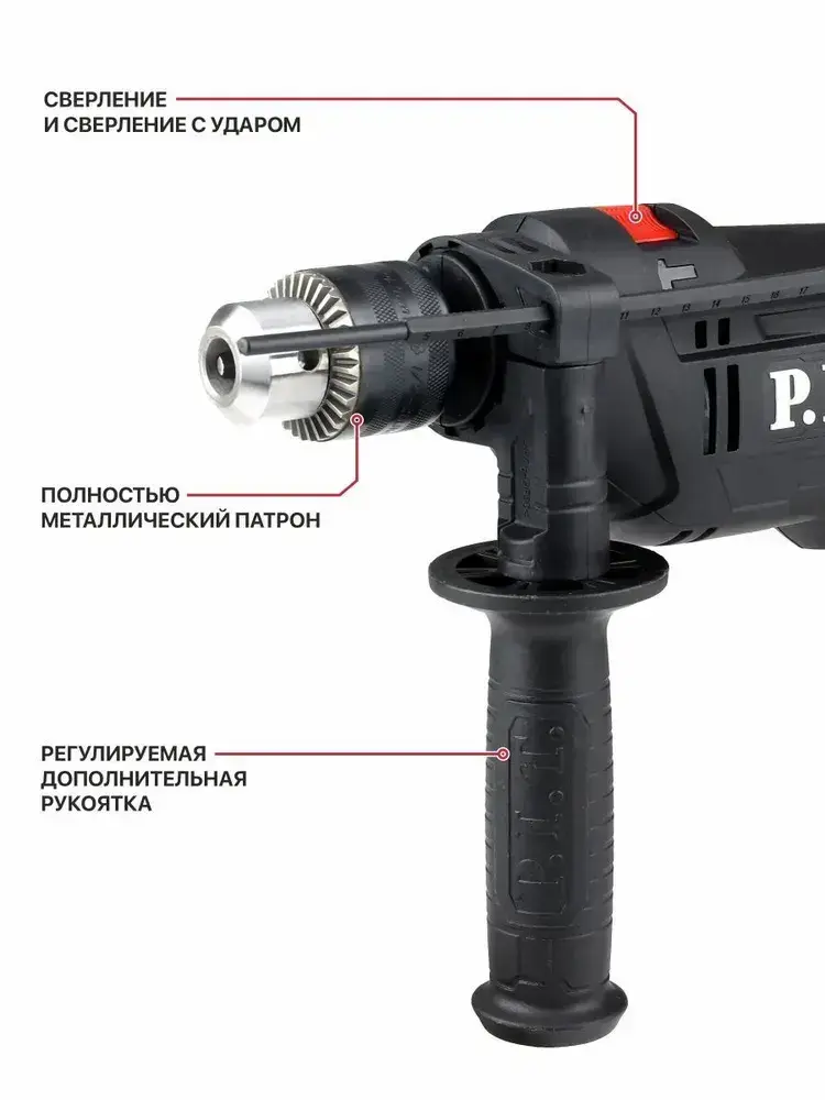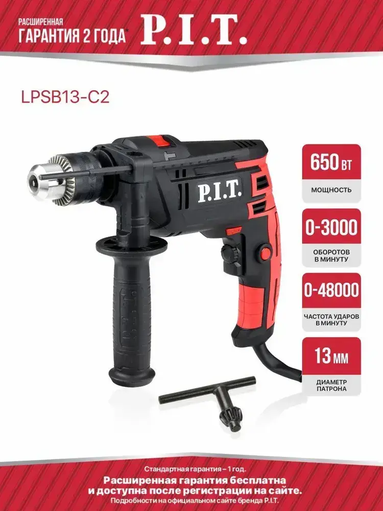 Дрель электрическая ударная P.I.T. LPSB13-C2 (650Вт, 0-3000 об/мин, 0-48000 уд/мин)