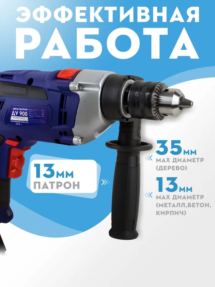 Дрель электрическая ударная сетевая Пульсар 900Wt ДУ 900 реверс
