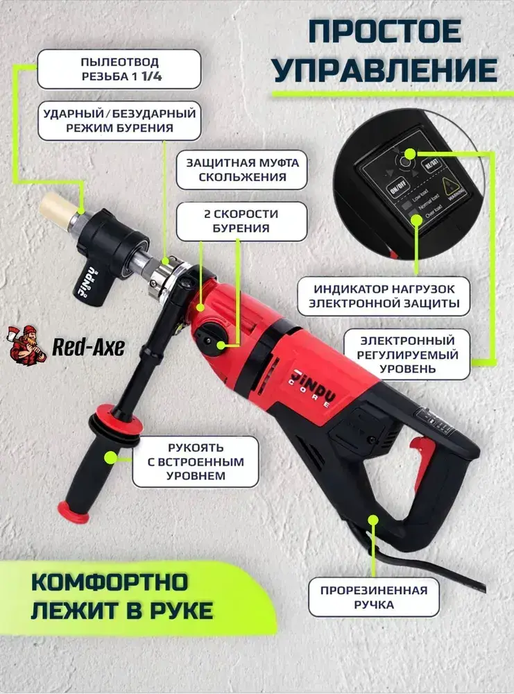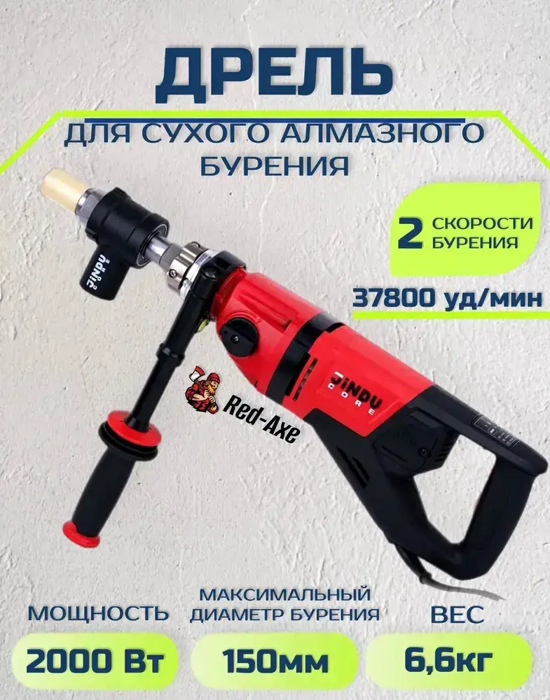 Дрель с микроударом для алмазного сверления JINDU JDC-06P пылеотвод в комплекте