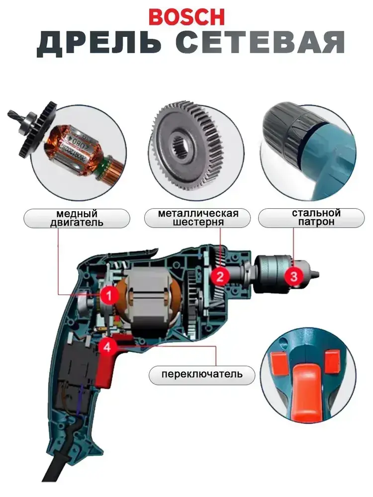 Дрель сетевая электрическая Bosch /ручная от сети