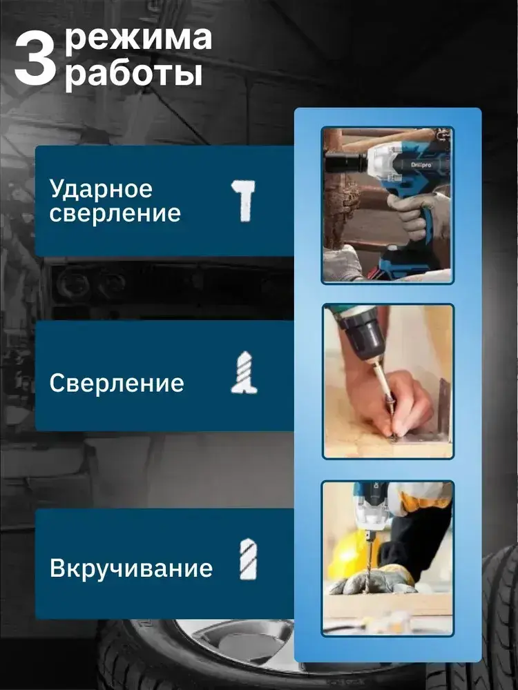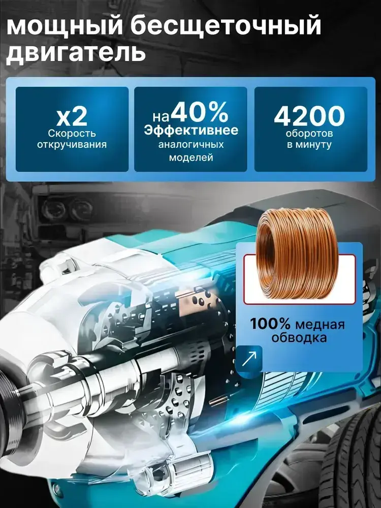 Дрель-шуруповерт 188v бесщеточный / гайковерт аккумуляторный бесщеточный / винтоверт аккумуляторный , 2 АКБ Li-ion, 6.0 Ач, 3в1