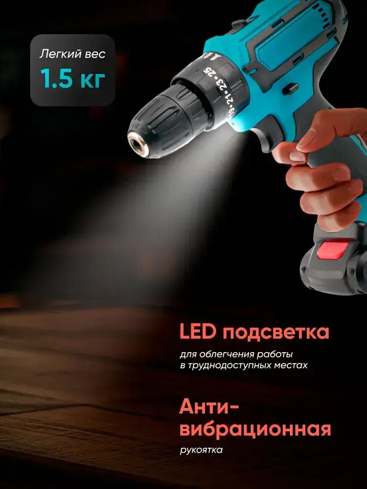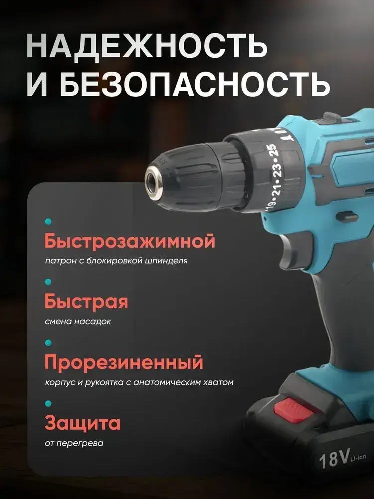 Дрель-шуруповерт, 18В, 42 Нм, 2 АКБ / подарок мужчине