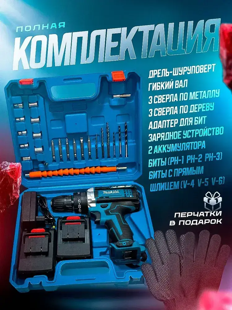 Дрель-шуруповерт, 21 В, 30 Нм, 2 АКБ