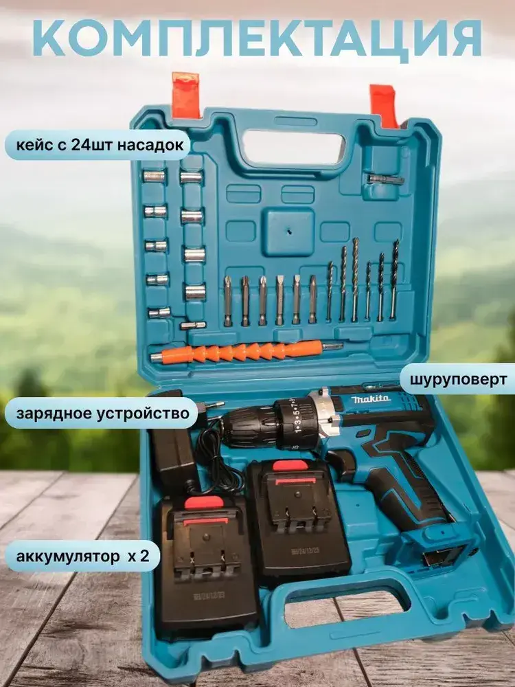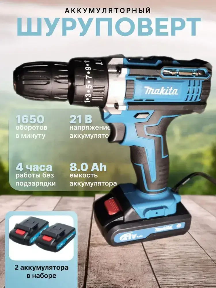 Дрель-шуруповерт, 21 В, 45 Нм, 2 АКБ