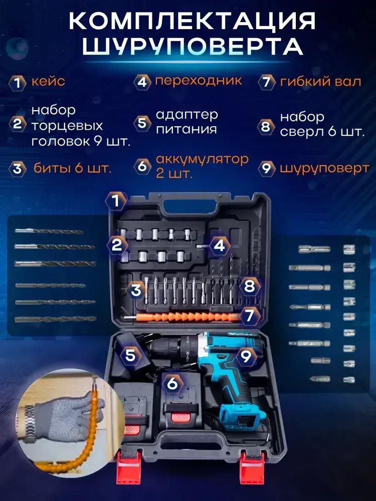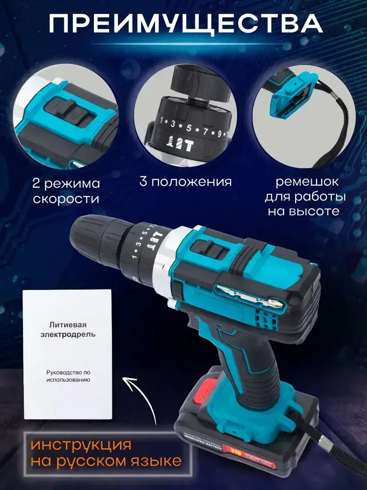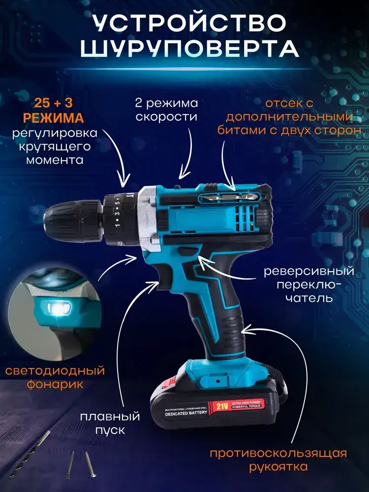 Дрель-шуруповерт, 21 В, 60 Нм, 2 АКБ