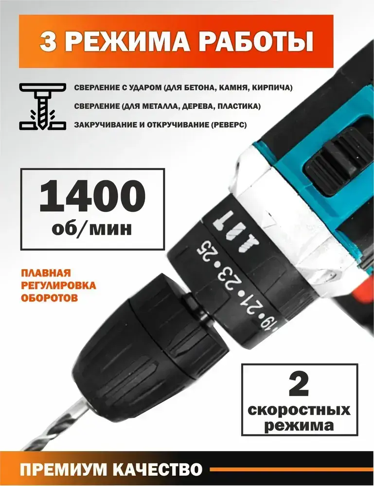 Дрель-шуруповерт, 36 В, 80 Нм, 2 АКБ