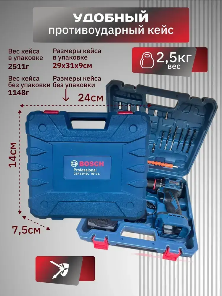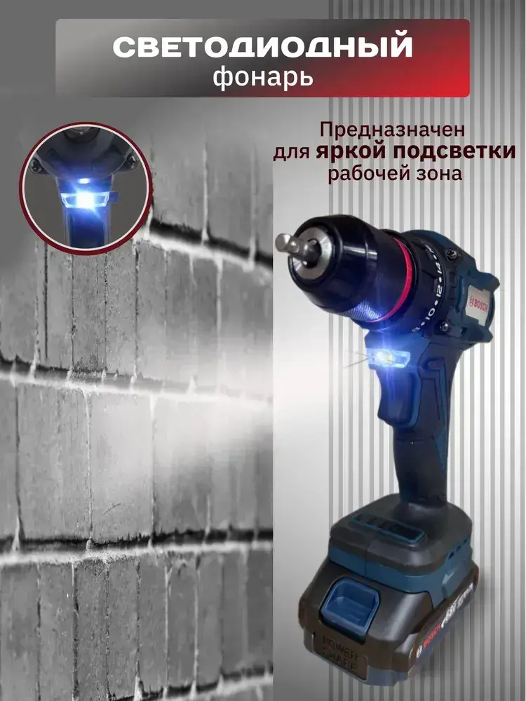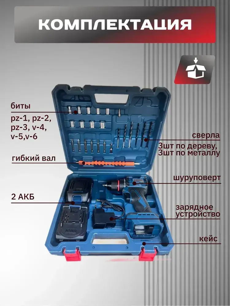 Дрель-шуруповерт 68v бесщеточный / Шуруповерт аккумуляторный бесщеточный ударный 68 вт с набором, 2 АКБ Li-ion, 8.0 Ач, 2 скорости