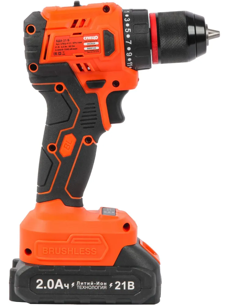 Дрель-шуруповерт аккумуляторная бесщеточная Спец БДА-21-Б, 21 В Li-ion 2x2 Ач