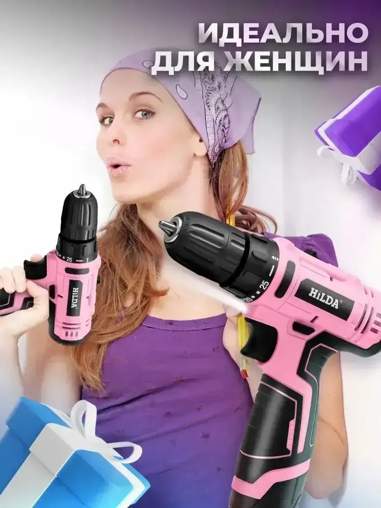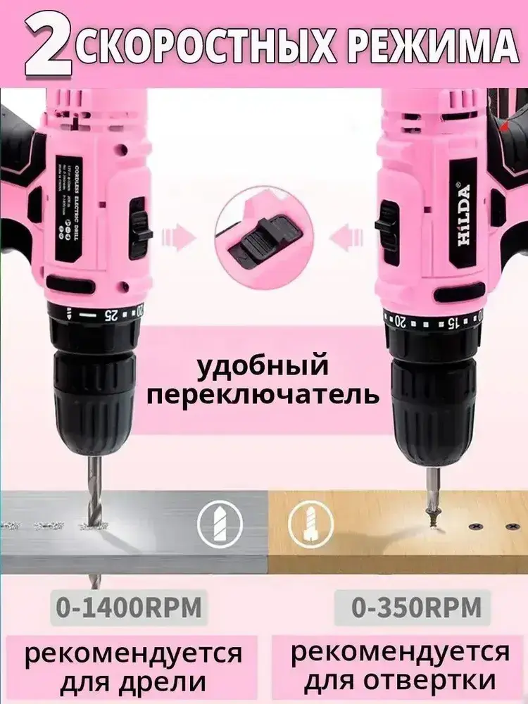 Дрель шуруповерт аккумуляторная дрель ручная, лёгкий вес, 2 скоростями 12 В,2 АКБ Li-ion, 20 Нм, 1400 об/мин, кейс + 20набор оснастки.