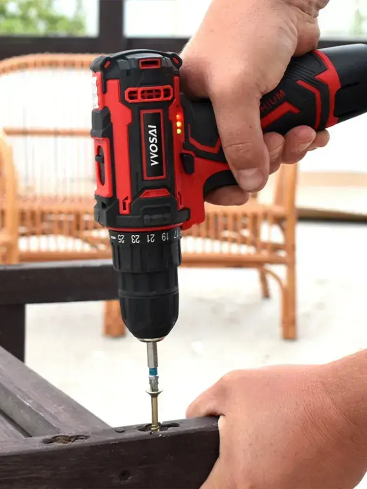 Дрель-шуруповерт аккумуляторная VVOSAI WS-3012-A2-SXP, 12В 28Нм, 2xLi-ion, ЗУ, аксессуары 24 штук, кейс для хранения
