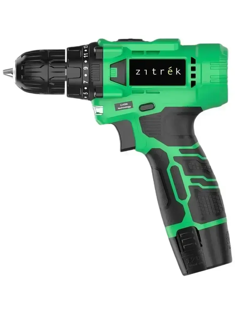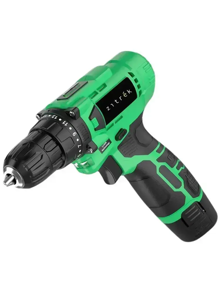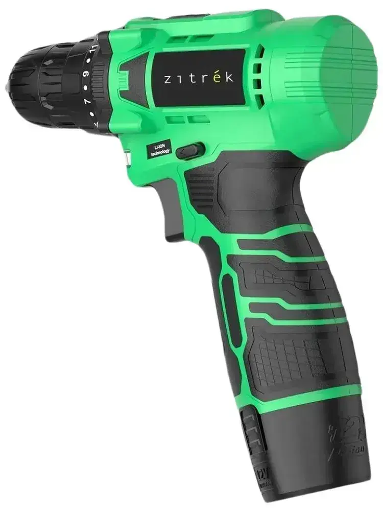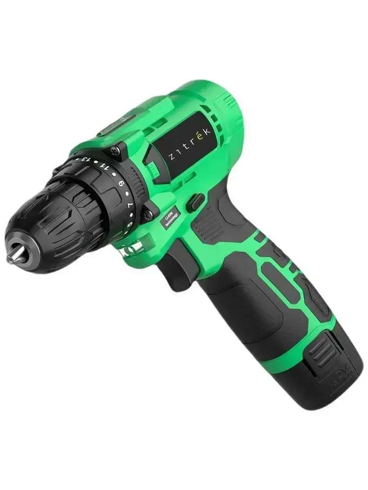Дрель-шуруповерт аккумуляторная Zitrek Green Li Plus (12В, АКБ 1.5Ач и З/У, 850 об/мин, 24 Нм, реверс, подсветка) / электроинструмент / электродрель