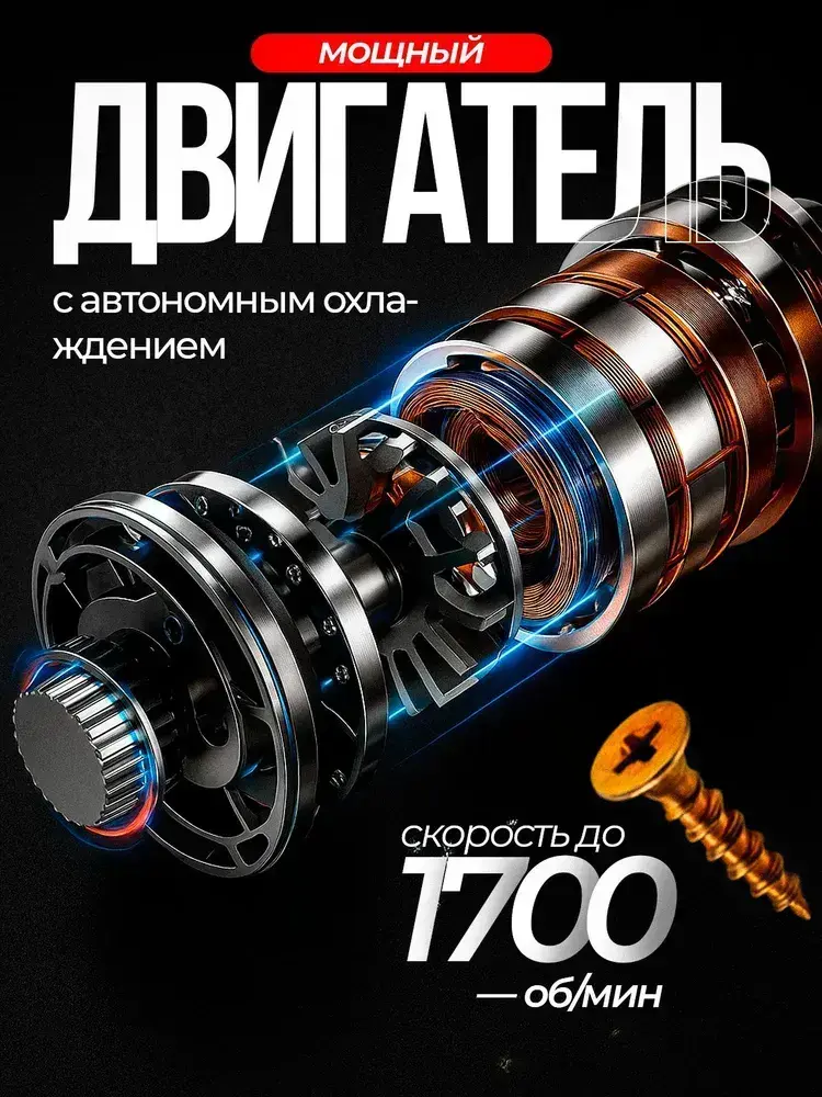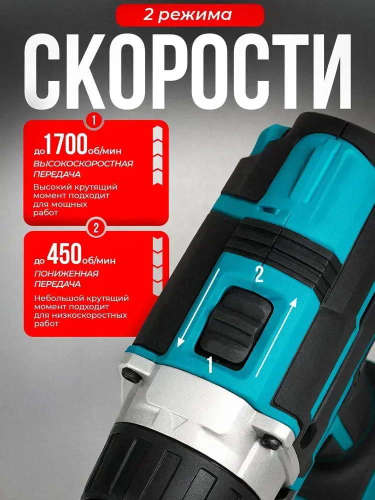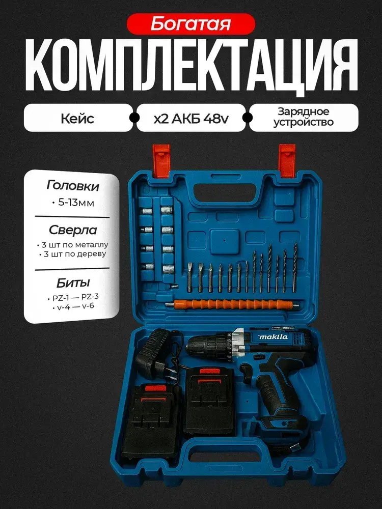 Дрель шуруповерт аккумуляторный 2 АКБ 48V/48В, 25 Нм, с набором насадок