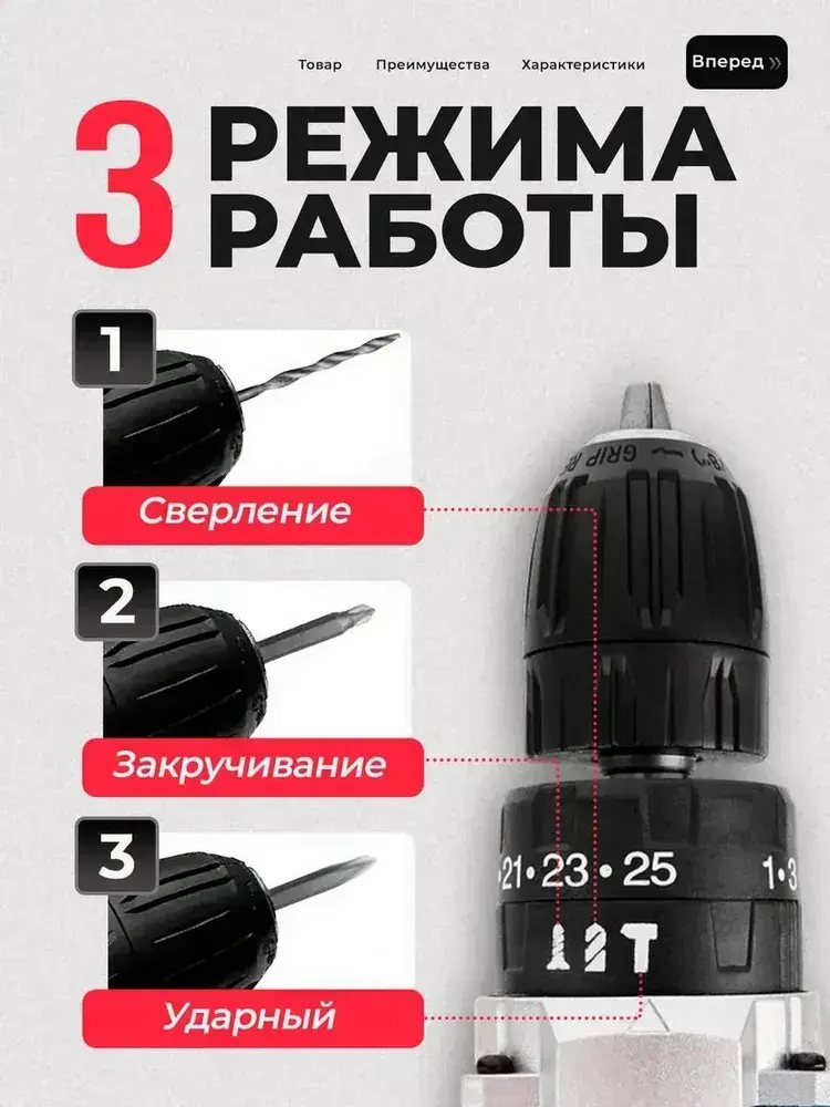 Дрель - шуруповерт аккумуляторный 21 В 2 АКБ / Шуруповерт аккумуляторный