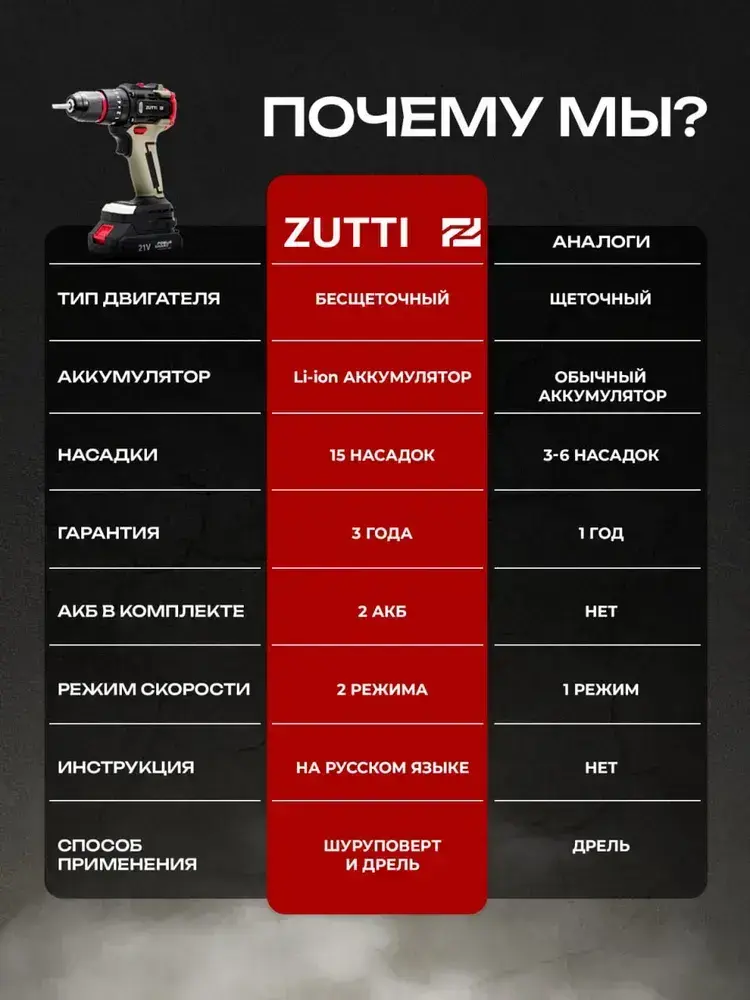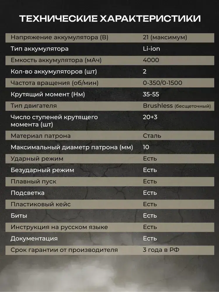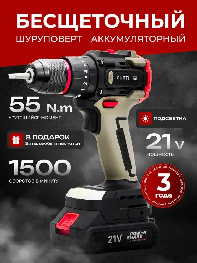 Дрель-шуруповерт, аккумуляторный, 21V, 2 АКБ , Бесщеточный