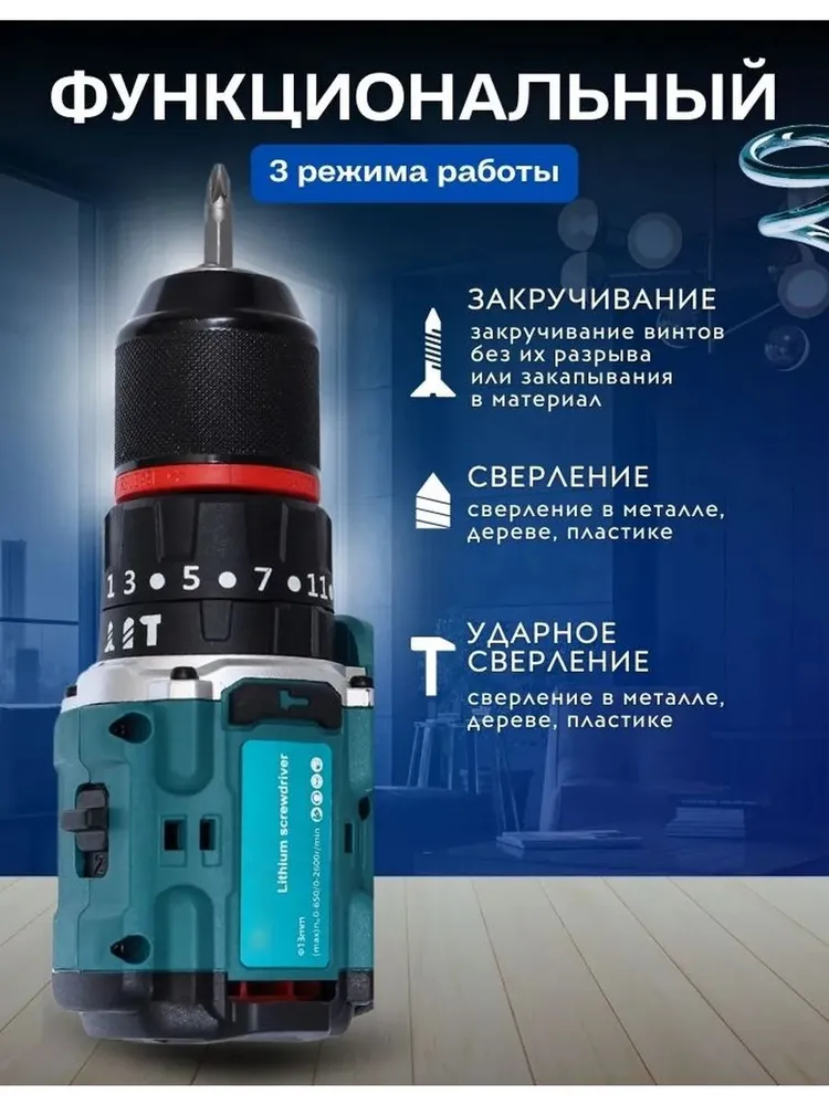 Дрель-шуруповерт аккумуляторный бесщеточный 1 АКБ, 70Н.м, 2200BL21V