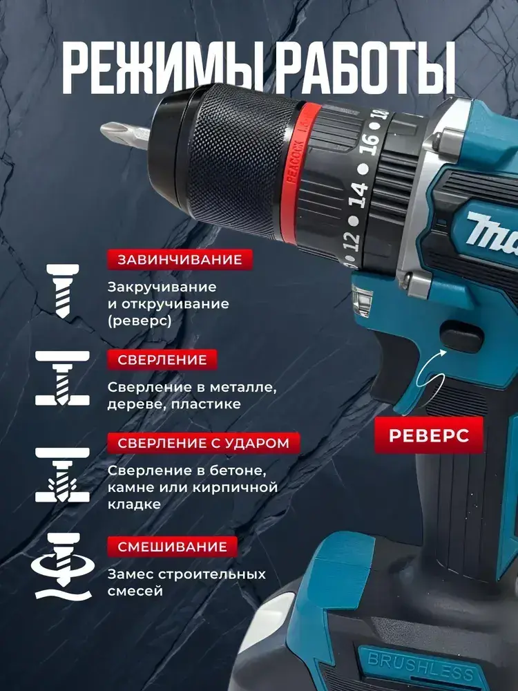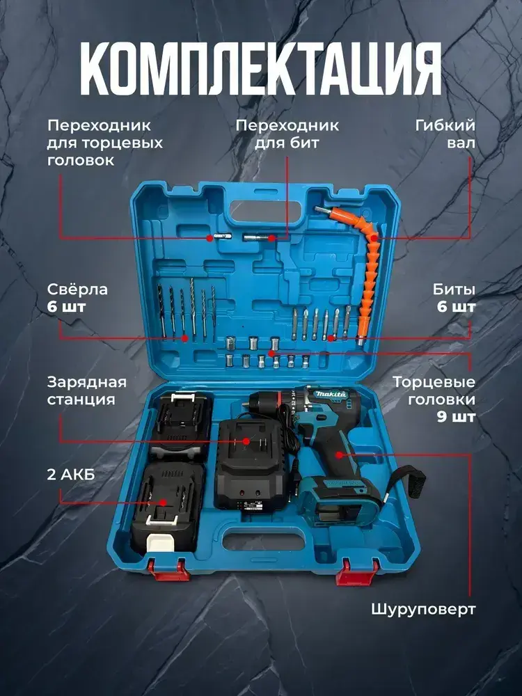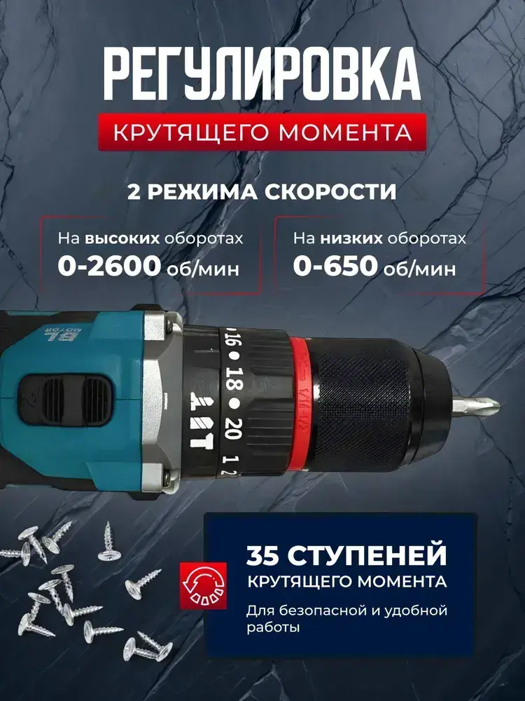 Дрель шуруповерт аккумуляторный бесщеточный, 2 АКБ 36В