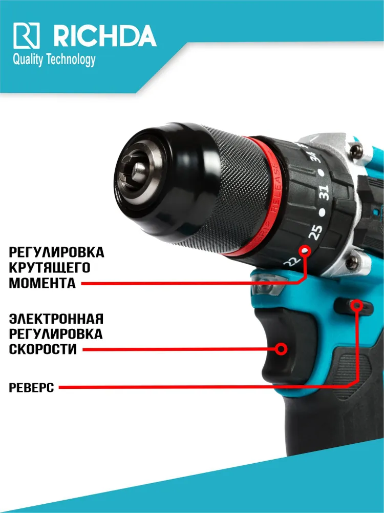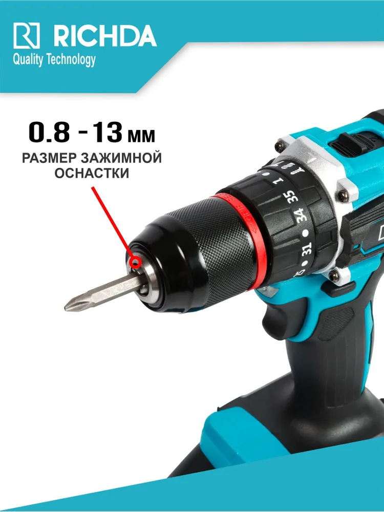 Дрель шуруповерт аккумуляторный, бесщеточный RICHDA 24B 2.0А.ч.
