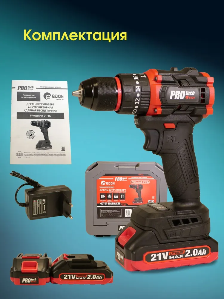 Дрель-шуруповерт аккумуляторный бесщёточный PROtechAD-21PBL