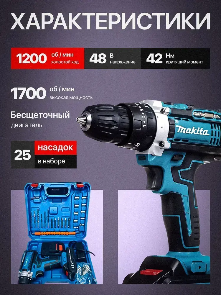 Дрель-шуруповерт Makita, 48V, 2 АКБ