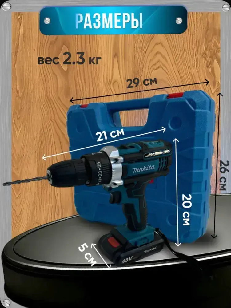 Дрель-шуруповерт Makita аккумуляторная, 2 АКБ 48V + кейс комплект сверл и бит