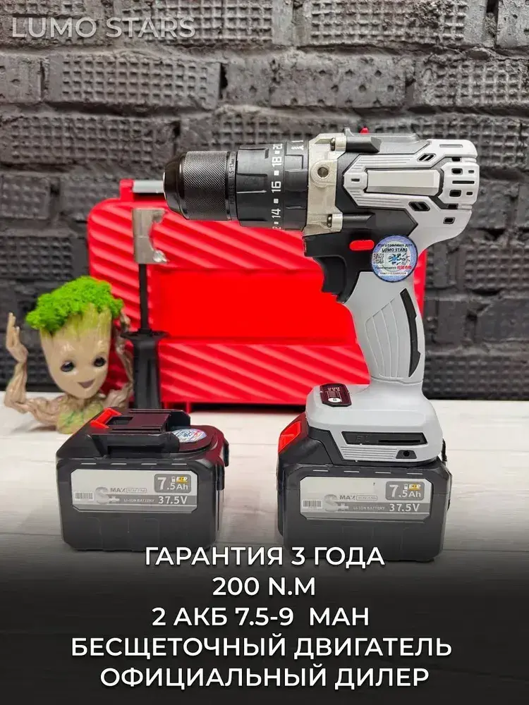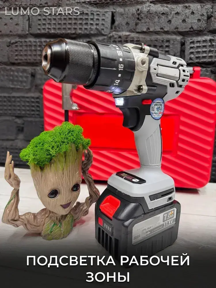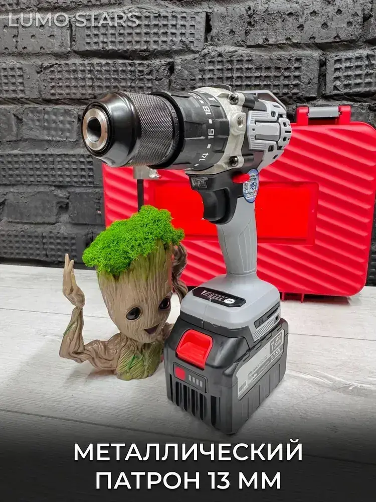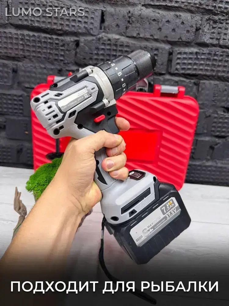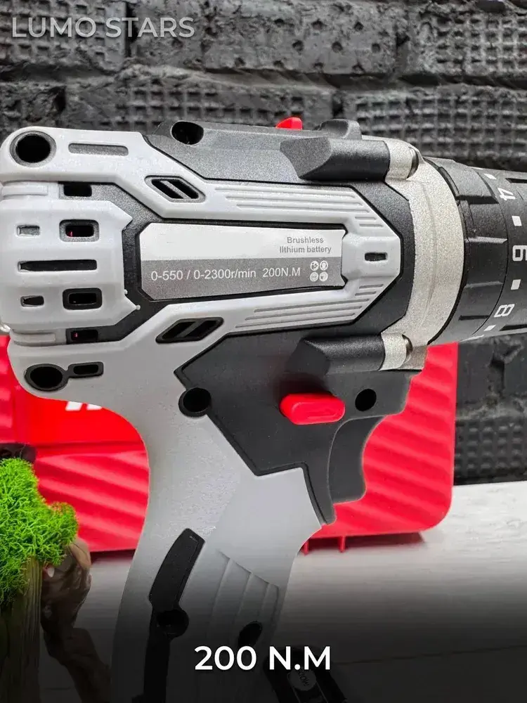 Дрель-шуруповерт шуруповерт для ледобура , 200N ,13 мм промышленного класса бесщеточная ударная дрель, От аккумулятора, 21 В, 120 Нм, 2 АКБ