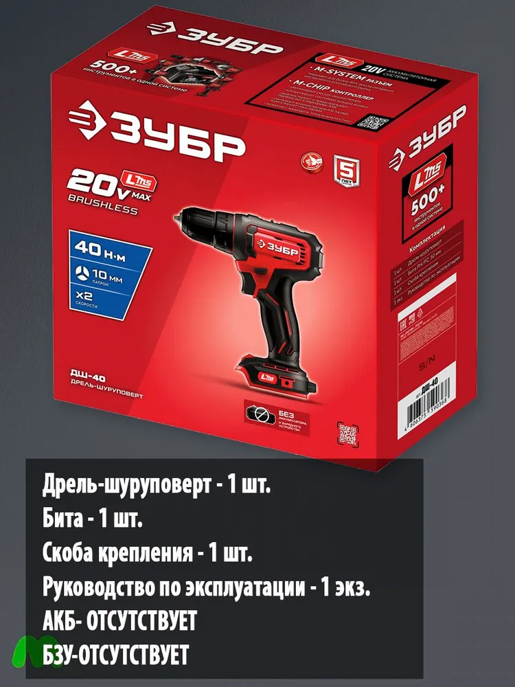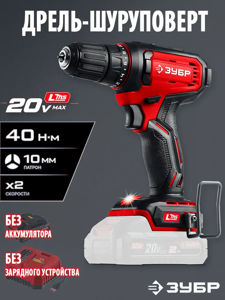 Дрель-шуруповерт ЗУБР LMS, 20В, 40Нм, БЕЗ АКБ, БЕЗ БЗУ, в коробке