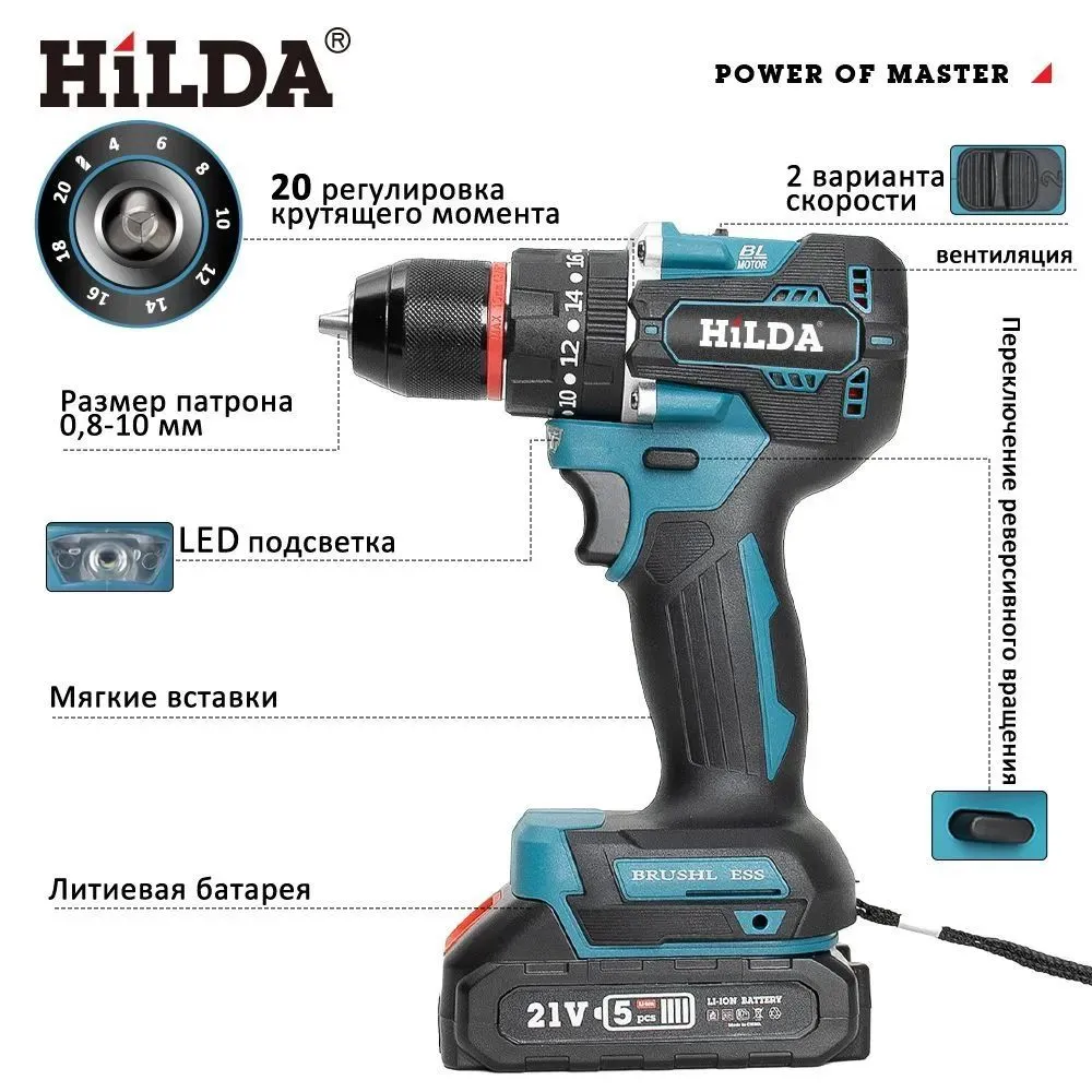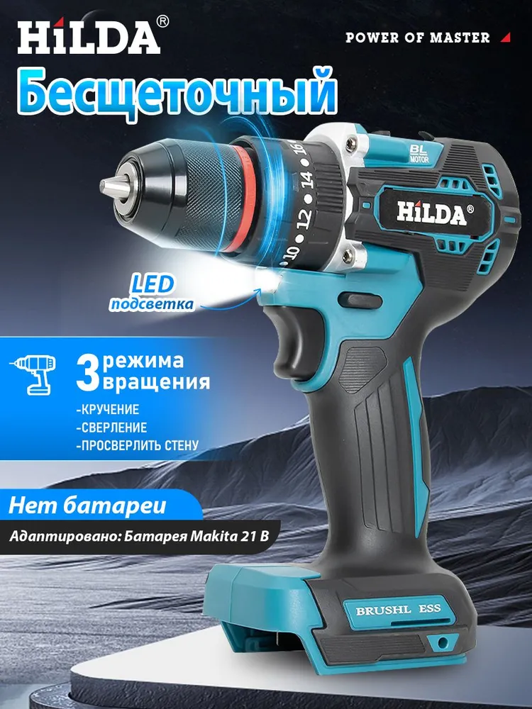 Дрель-шуруповерт,дрель шуруповерт аккумуляторная,Бесщеточный (Батарея в комплект не входит)
