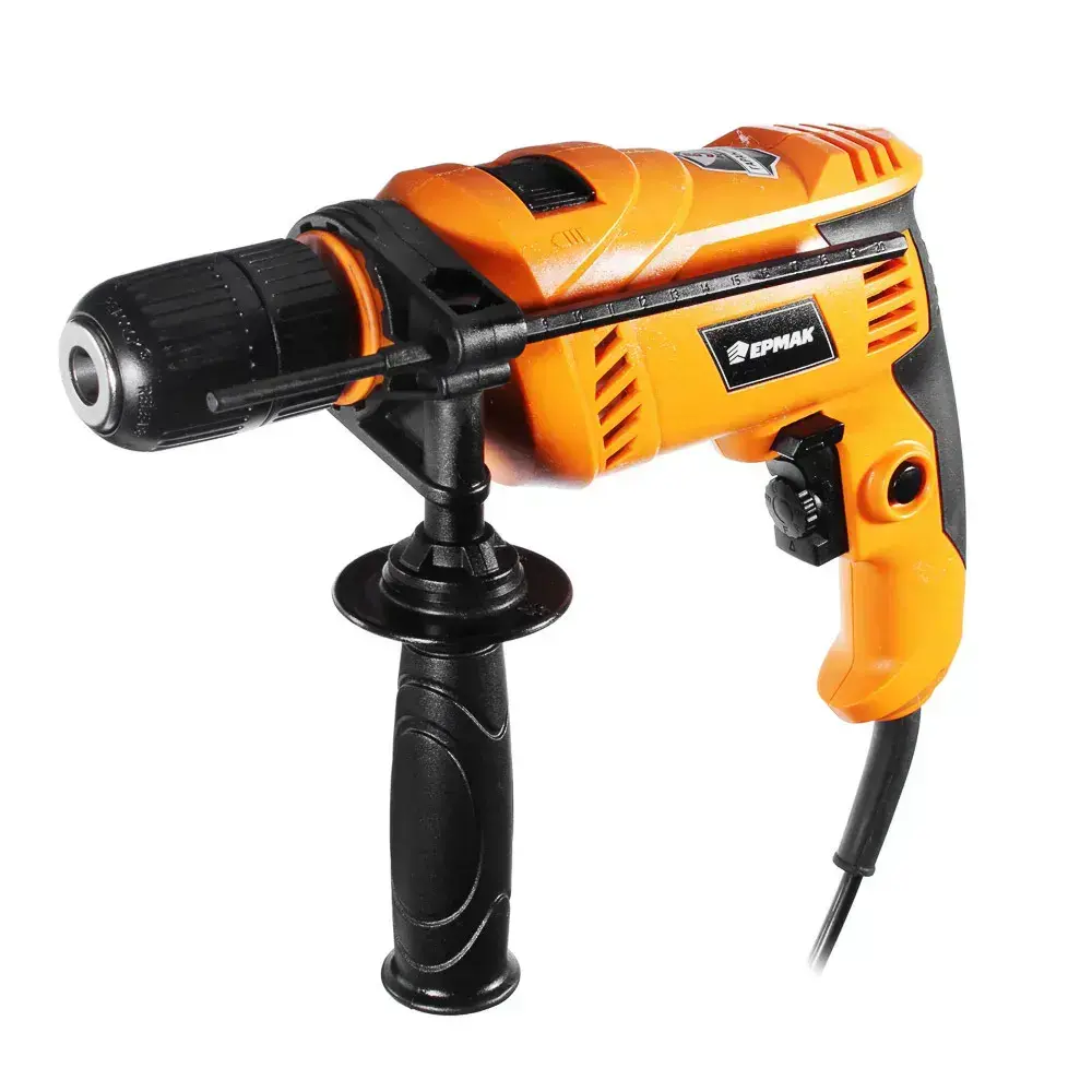 Дрель ударная электрическая ЕРМАК ДУ-780-Б, 780Вт, быстрозаж. патрон 13мм, 0-3000 об/мин, рег.скор, реверс