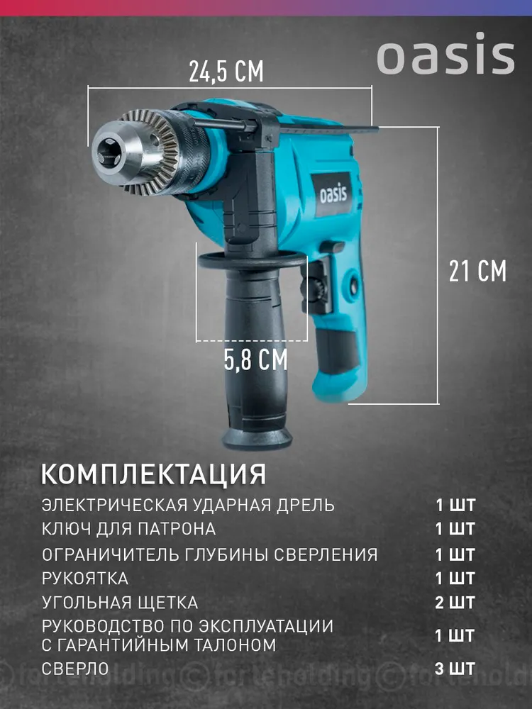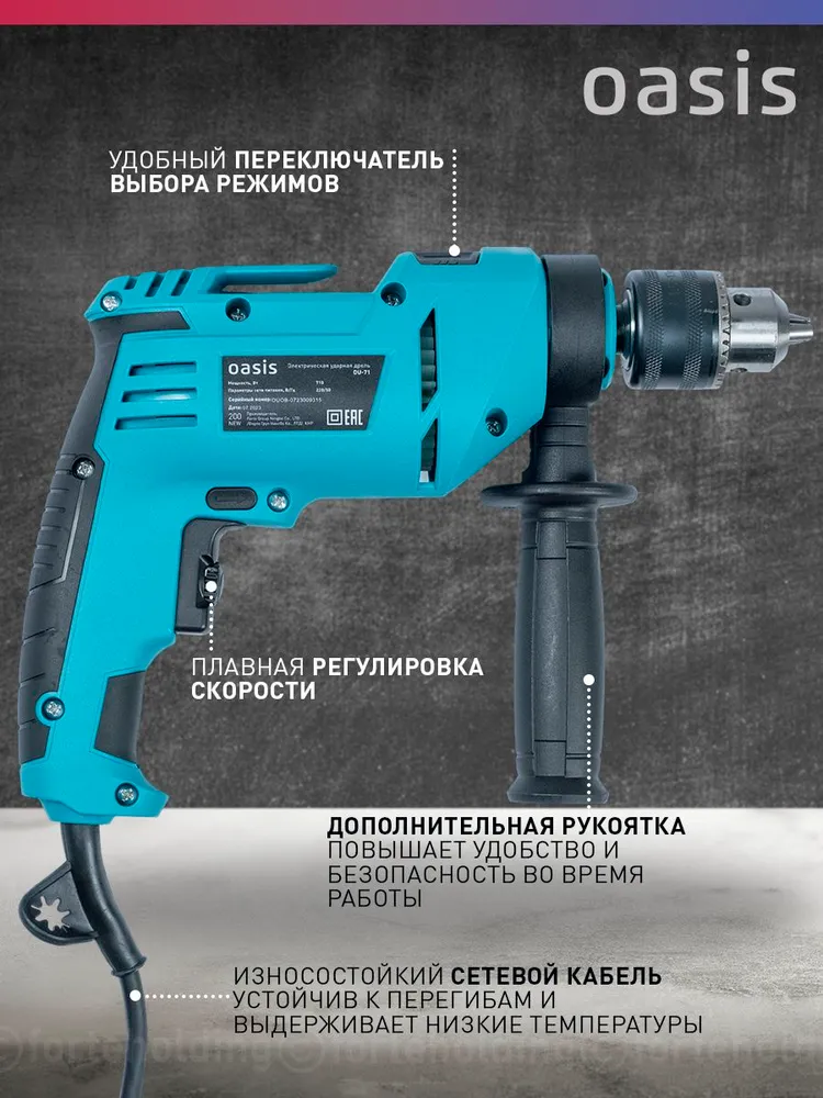 Дрель ударная электрическая сетевая Oasis DU-71, 710 Вт / электродрель перфоратор