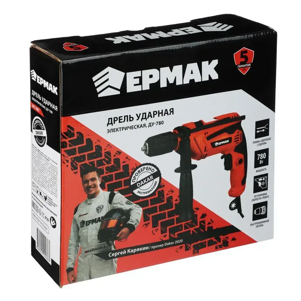Дрель ударная электро ДУ-780, 780Вт, быстрозаж. патрон 13мм, 0-3000 об/мин, рег.скор,реверс. электродрель