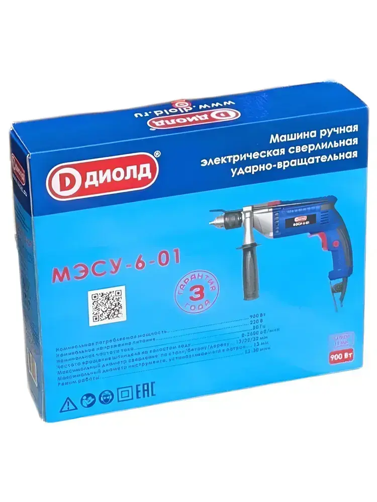 Дрель ударная сетевая ДИОЛД МЭСУ-6-01, 900Вт, 2500 об/мин, 40000 уд/мин