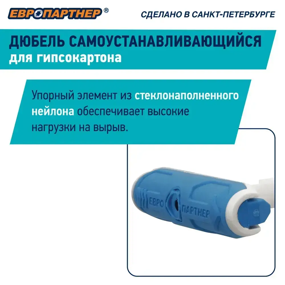 Дюбель для гипсокартона самоустанавливающийся TWIN PAK нейлоновый ЕВРОПАРТНЕР (10 шт.)